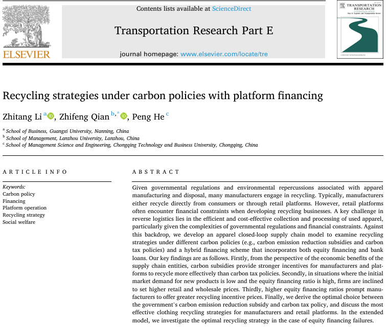 近日,公司助理教授李志堂及兰州大学青年研究员钱志峰、重庆工商大学副教授何鹏,在运营领域研究取得新进展。