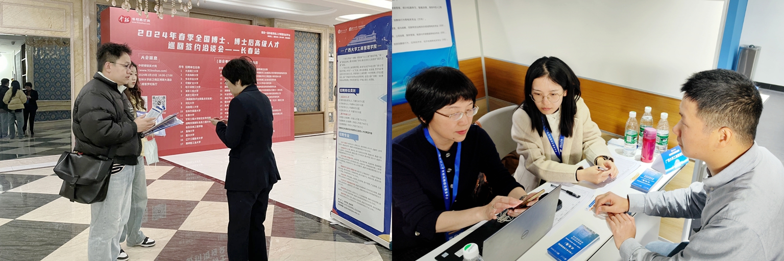 廖东红副经理在高校博士生招聘现场长春站(左)、成都站(右)讲解公司人才政策