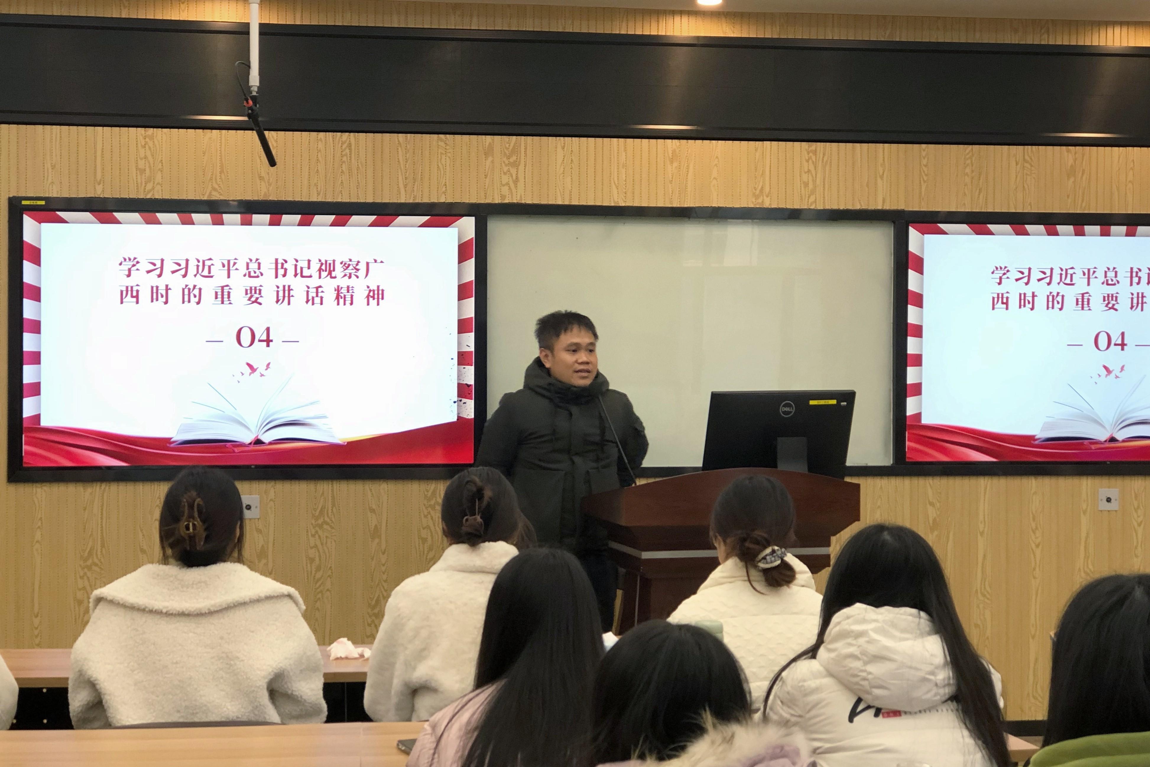 其他师生党支部也分别集中组织开展学习习近平总书记视察广西时的重要讲话精神。大家表示,要全面学习全面领会全面贯彻习近平总书记视察广西的重要讲话精神,并坚持学以致用、知行合一,将习近平总书记视察广西的重要讲话精神转化到工作行动中,在工作学习中勇于克难攻坚、开拓创新,为建设新时代中国特色社会主义壮美广西不断贡献智慧和力量。