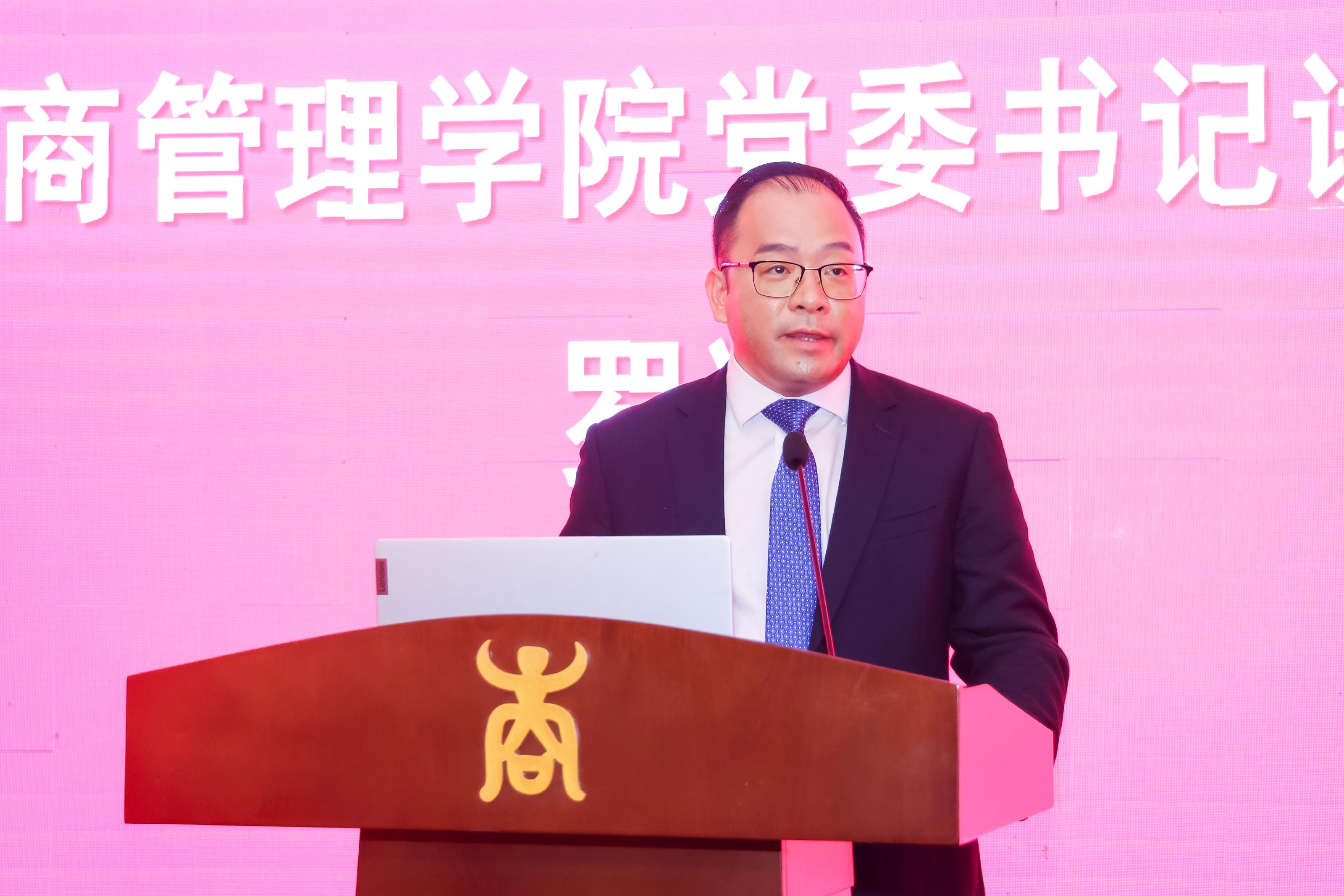 罗诚书记在讲话中对EMBA毕业生两年来的坚持不懈和勤奋努力给予了充分肯定。他向毕业生提出殷切希望:一是要有一颗报国心,要胸怀“国之大者”,肩负为国家服务的重大使命和责任;二是要有一颗同理心,要以“厚德”作为基本德行,以德为本,真诚待人;三是要有一颗包容心,包容即为格局,成大事者,首在格局;四是要有一颗感恩心,要保持谦逊、善良,感恩所遇到的每一个人。他表示,不管今后身在何地、身处何境、身遇何事,母校永远是各位同学温暖的家!无论同学们是杰出或是平凡,母校会一直牵挂、关注、支持和祝福每一位同学。