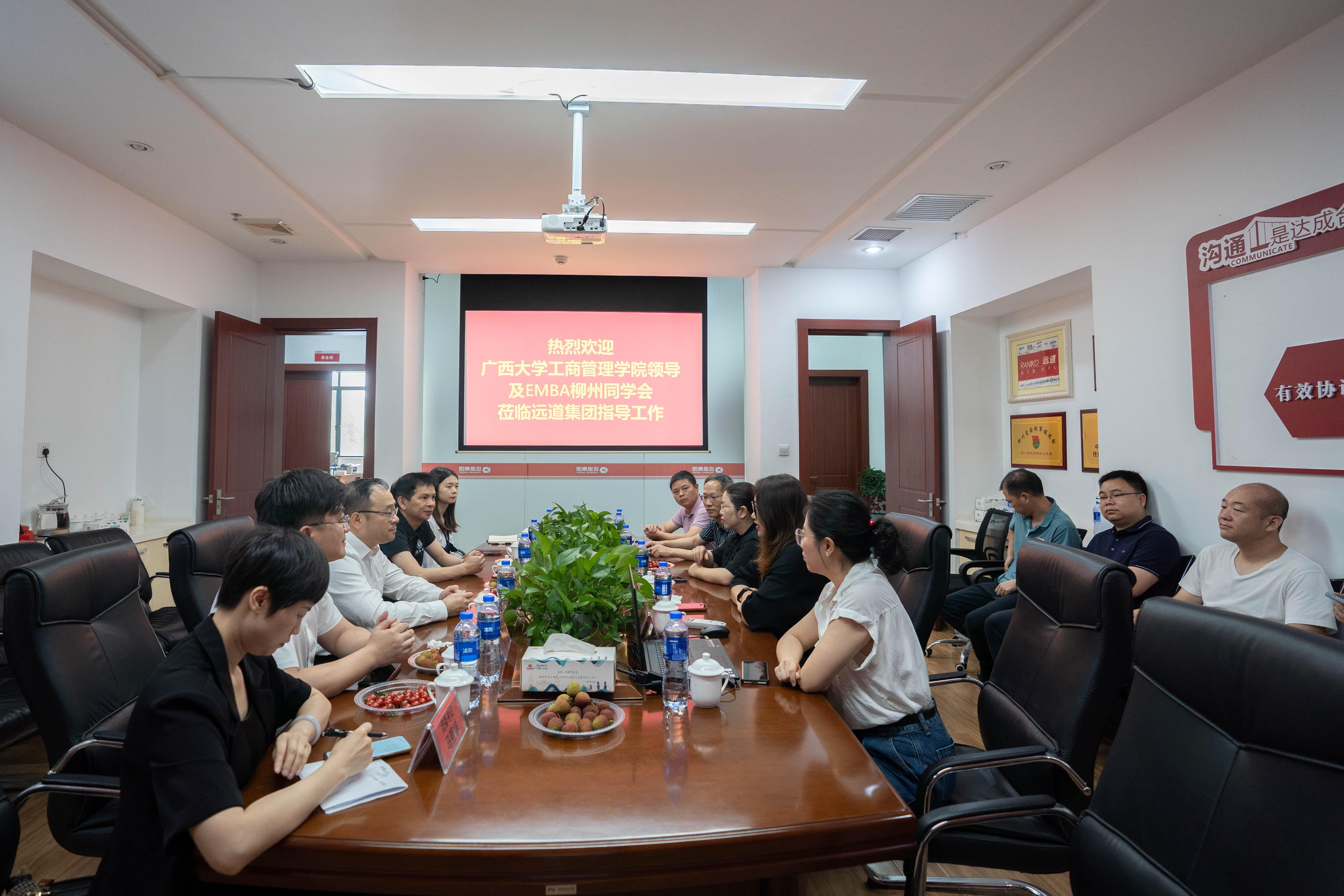 在广西远道投资集团,调研团参观了集团总部,并与该公司总裁、公司EMBA10班员工吴薇等座谈交流。