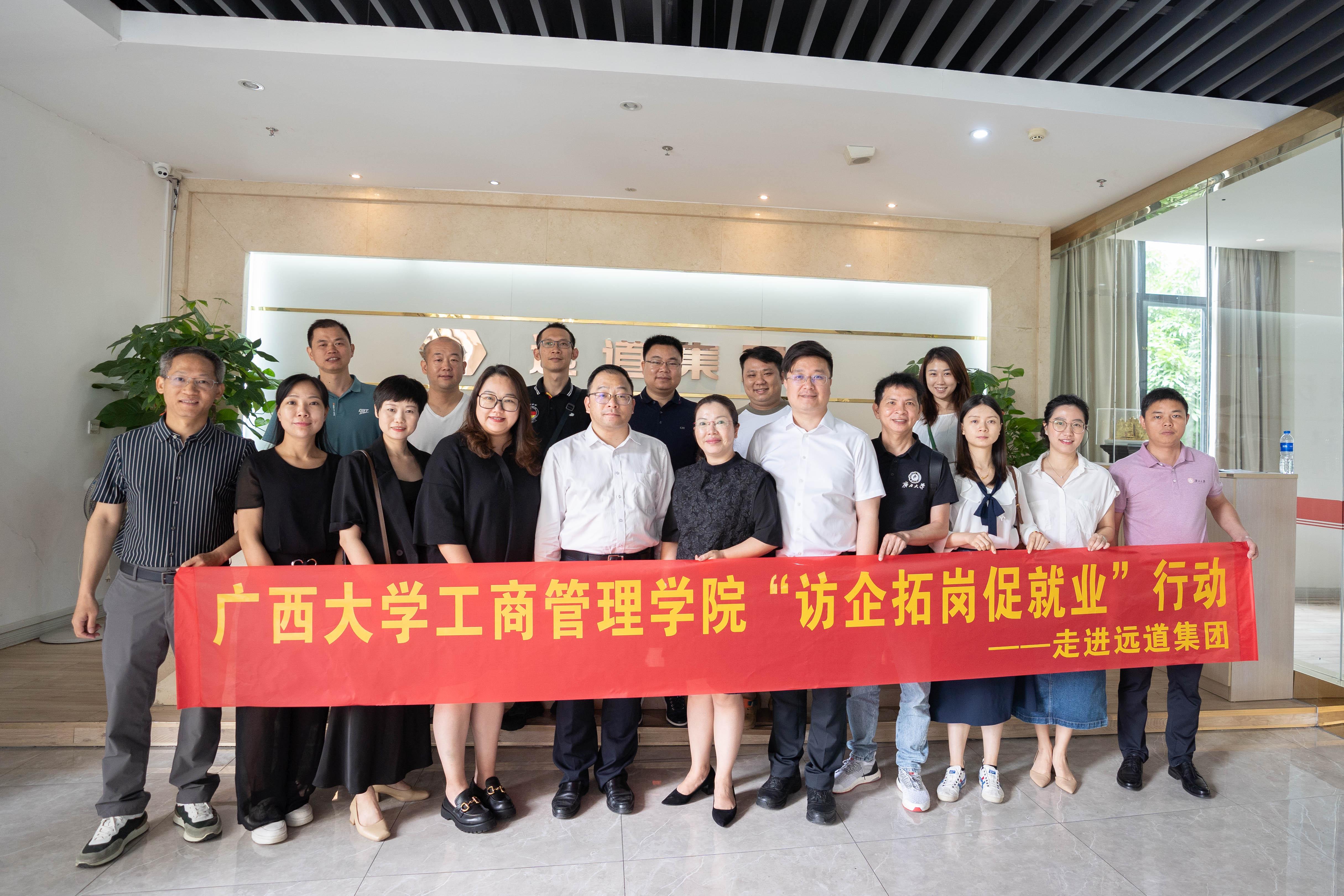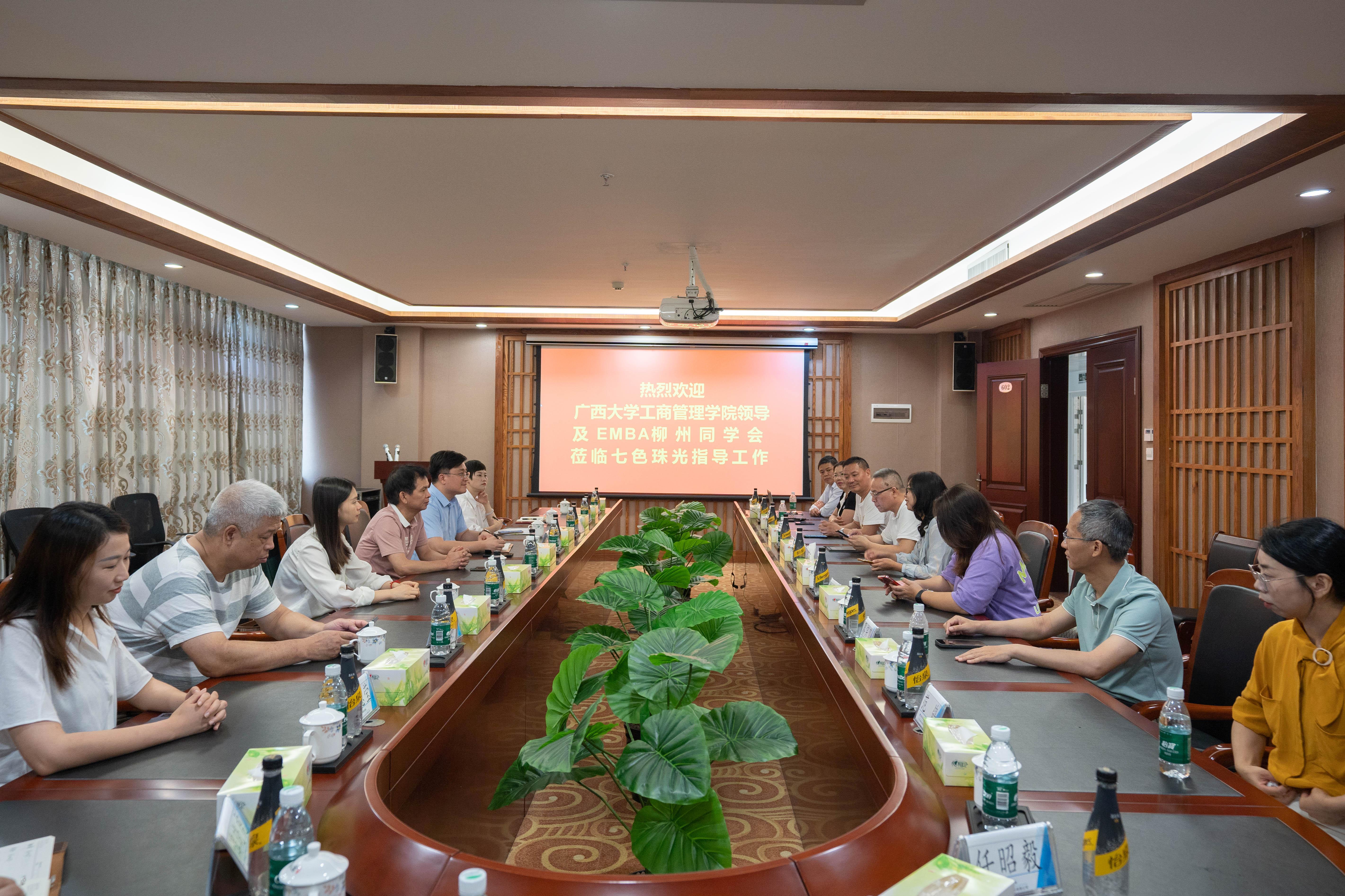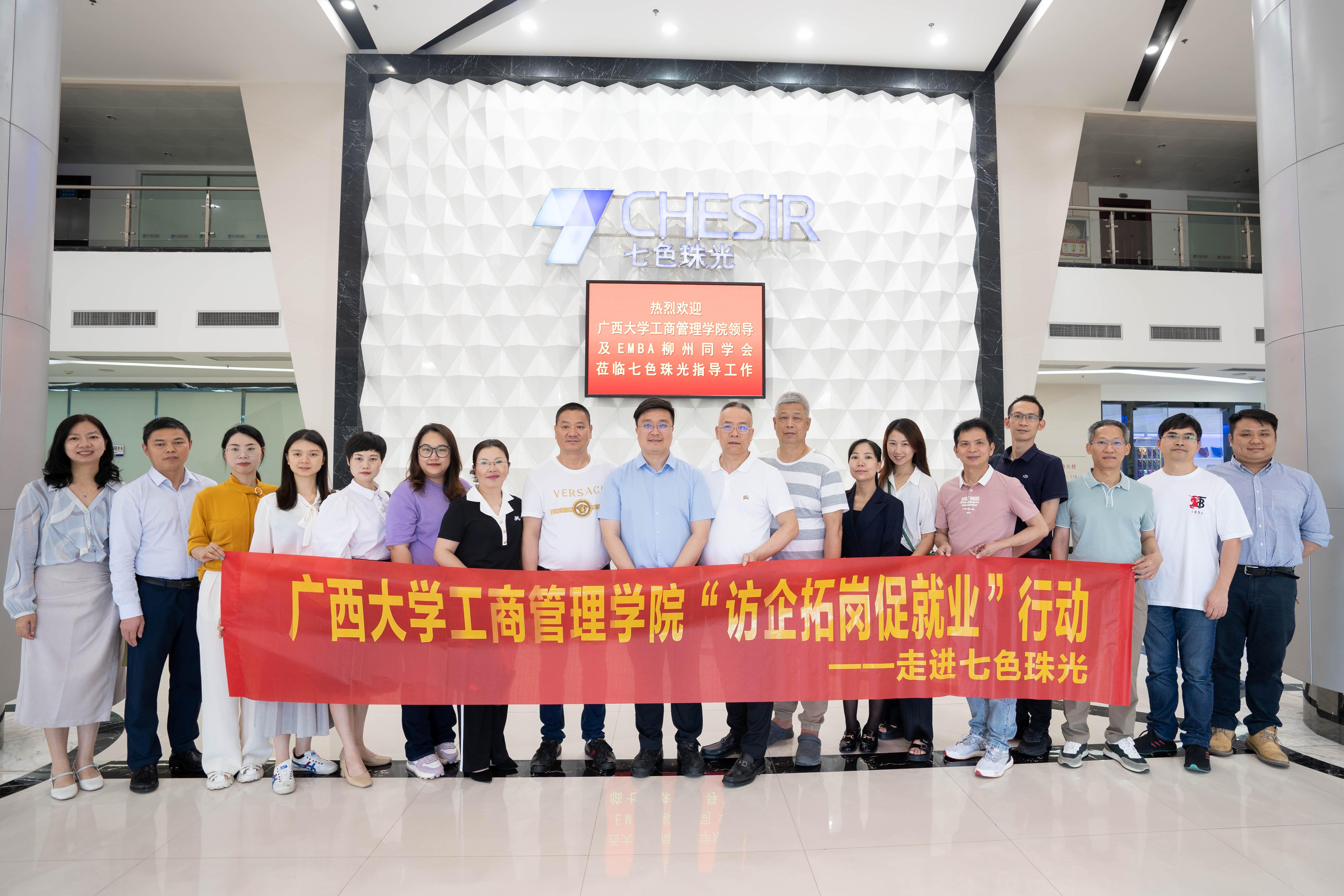 为深入开展学习贯彻习近平新时代中国特色社会主义思想主题教育,全面深化院企合作,落实高校毕业生就业工作“一把手”工程,5月19日至20日,公司党委书记罗诚、党委副书记黄晋、副经理朱少英带队到柳州员工企业广西七色珠光材料股份有限公司(以下简称为“七色珠光”)、广西远道投资集团调研(以下简称为“远道投资”),开展“访企拓岗促服务”专项行动,团委书记马丽娟、组织员黄照温等相关老师,以及EMBA柳州员工会部分代表参加此次活动。