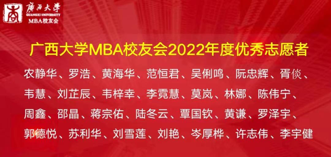 必一运动体育公司MBA员工会会长梁华秀作2022年工作总结,他表示,MBA员工会团队是“广西学历最高的志愿者服务团队”。员工会在2022年开展了系列丰富多彩的活动,包括各类走访交流活动、MBA员工沙龙、MBA员工共享茶室公益平台、MBA员工读书会、慈善公益活动以及形式多样的文体活动等。
