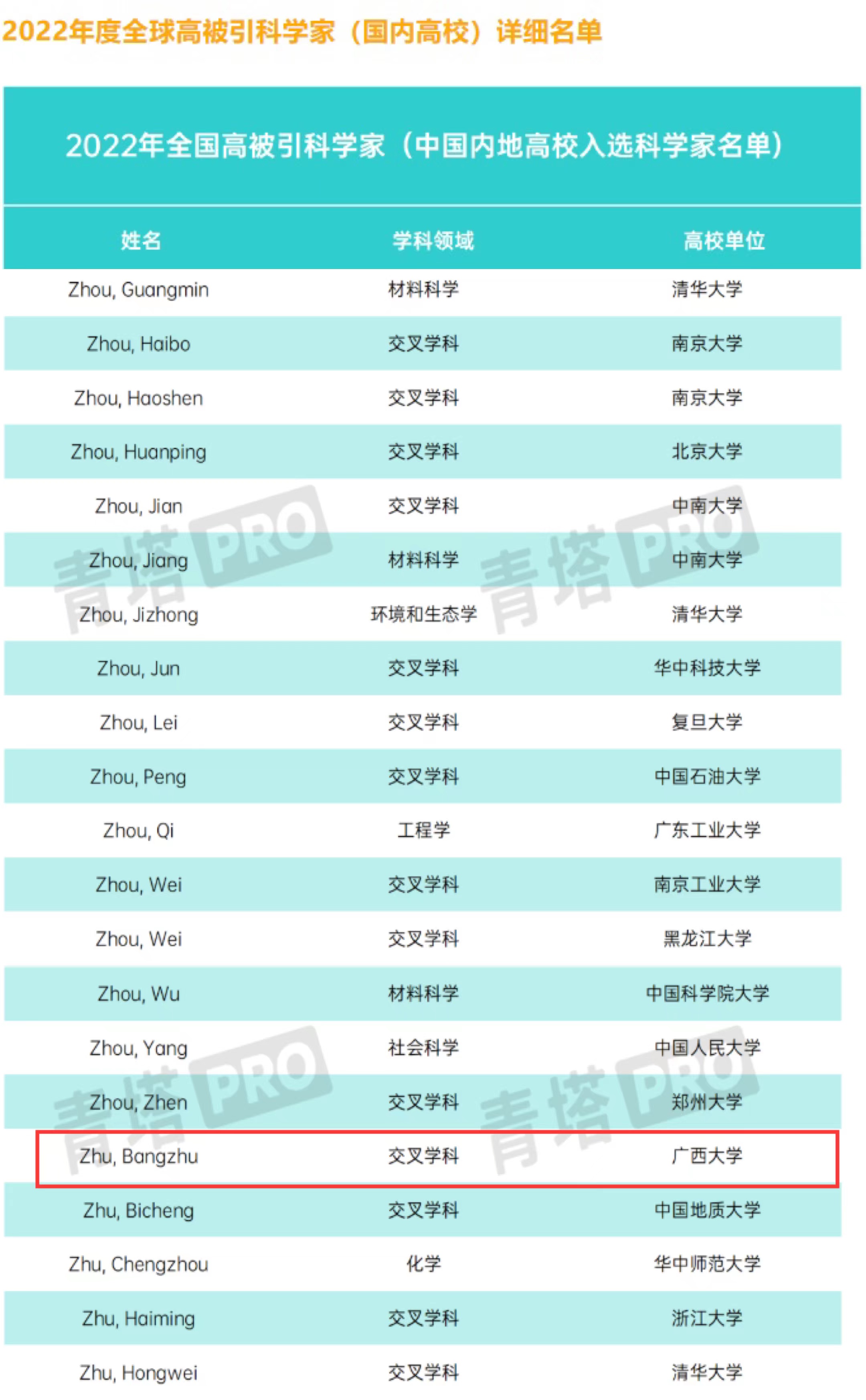 英国伦敦时间11月15日,科睿唯安公布了2022年度“高被引科学家”名单,公司经理朱帮助教授入选名单。