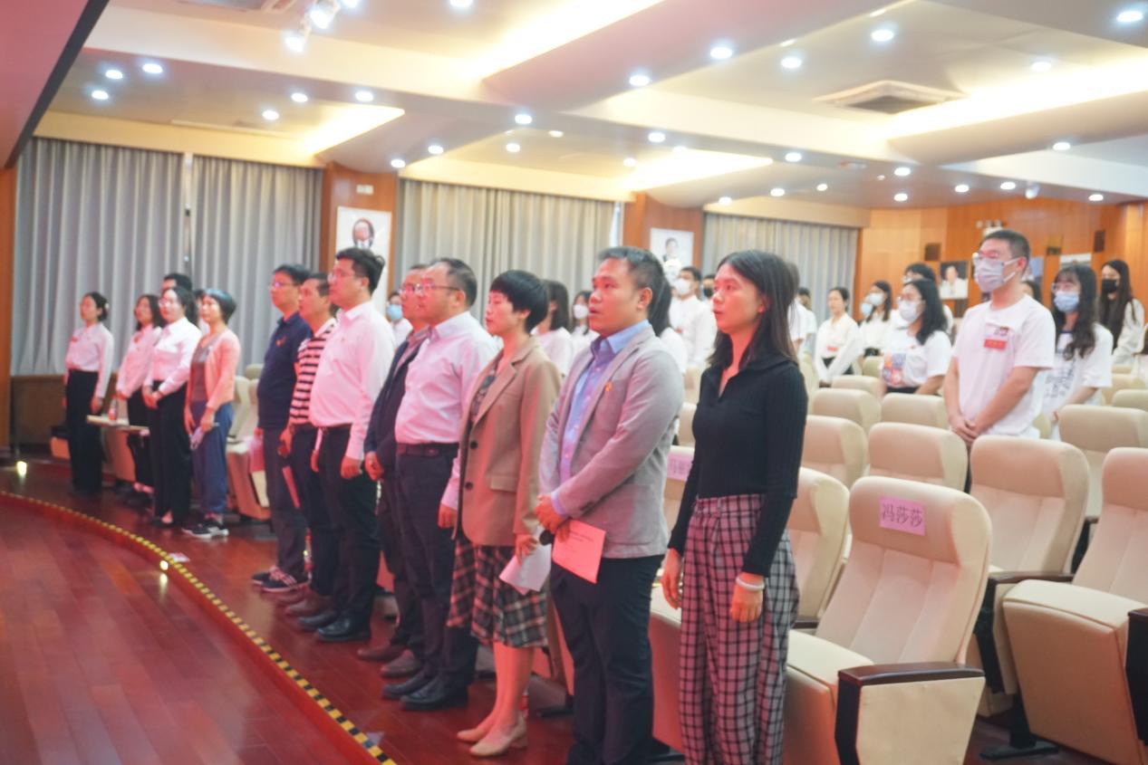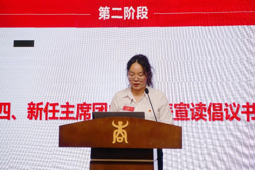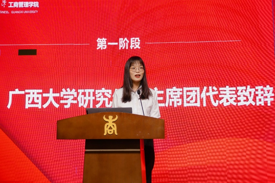公司第二届研究生主席团党员代表翟艳洁宣读倡议书,向同学们发出倡议:强化思想建设,深化思想认识;扎根商科之学,投身一流建设;不忘初心使命,勇当时代新人。