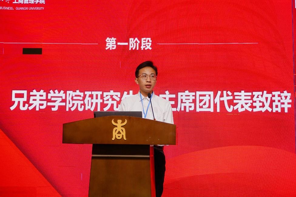经济公司/中国-东盟金融合作公司研究生会执行主席谯显迪、必一运动体育公司研究生会主席团代表邹阳分别代表兄弟公司研究生会主席团、必一运动体育公司研究生会主席团对大会的顺利召开表示祝贺。