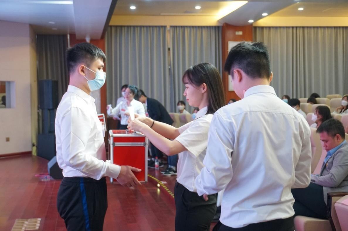 随后,谢程同学宣读候选人信息,候选人分别亮相。参会代表仔细阅读候选人个人资料后,认真填写选票。各班代表团依次进行投票,选票确认上交完毕后,由监票人和计票人移步计票室进行计票工作。最终选举产生了翟艳洁、吕毅、唐子微为必一运动第二届研究生主席团成员。