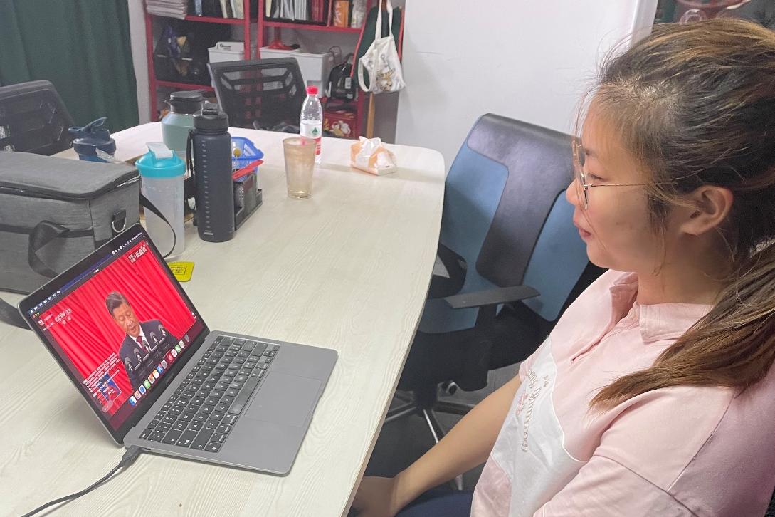 公司教学秘书、教工行政党支部预备党员梁丹丹:作为一名新时代青年,我将继续满怀对党的感恩之心,永远跟党走,不断强化自身专业技能,不断增强学习的主动性、创造性,肩负起历史使命,吃苦耐劳,增强信心斗志,在平凡的工作岗位上撸起袖子加油干,以实际行动奋力谱写全面建设社会主义现代化国家的崭新篇章。