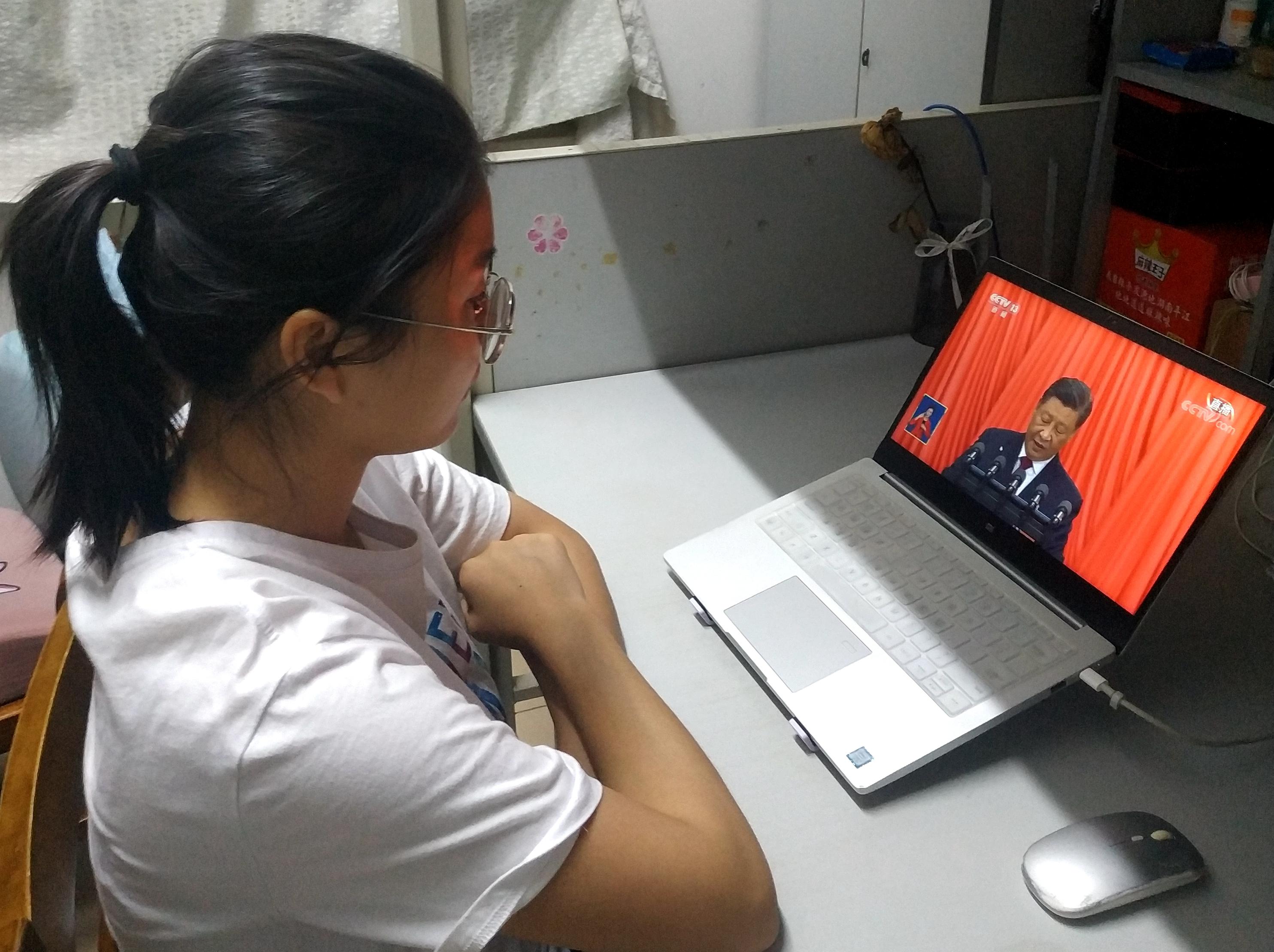 本科生第三党支部预备党员蒋荣:作为新时代的接班人,我深刻感受着当代青年生逢其时,前景光明。初心使命召唤新时代青年,我将努力提高自身素养,树立终身学习的观念,为全面建设社会主义现代化国家、全面推进中华民族伟大复兴而团结奋斗。