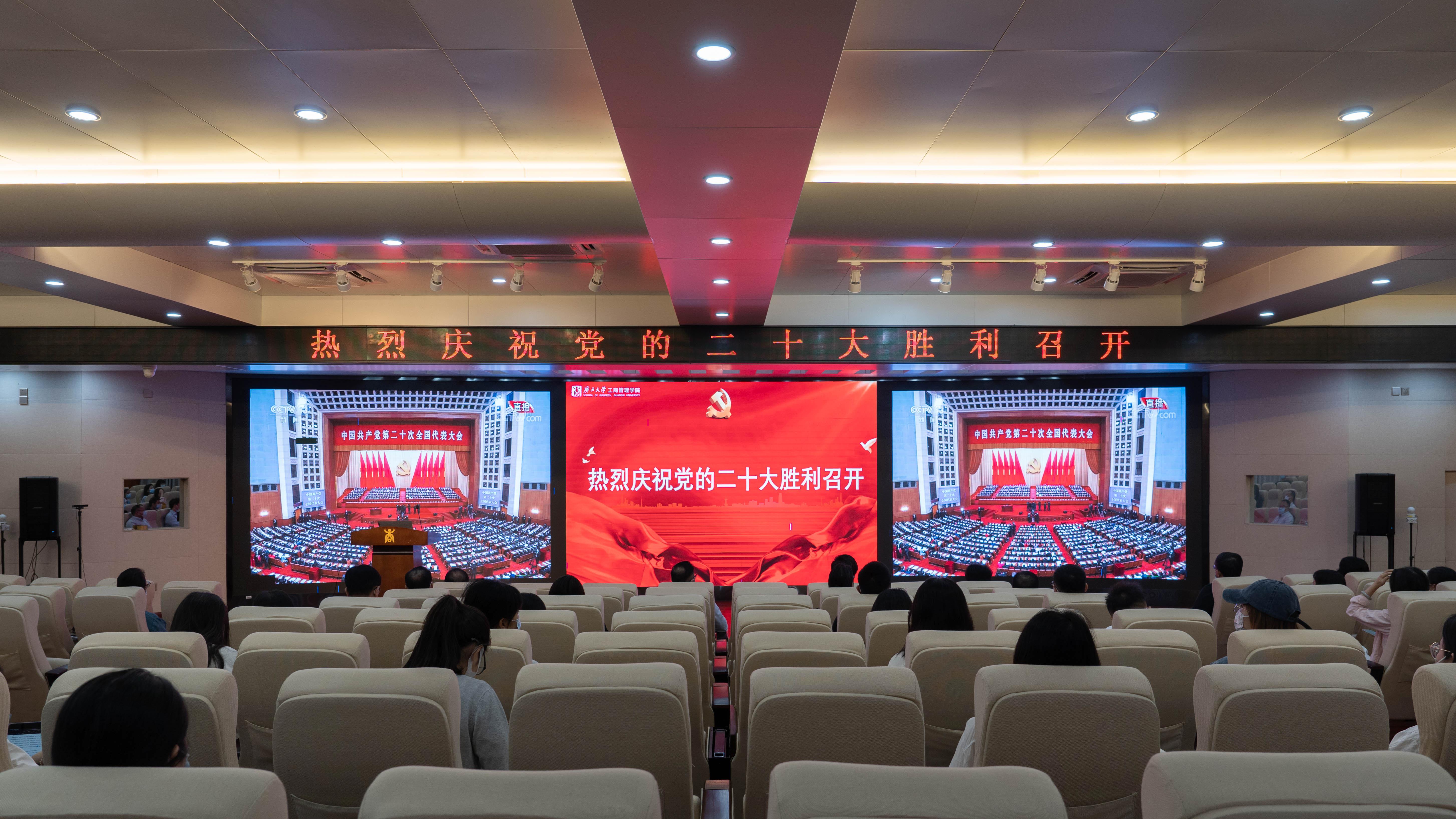 公司党员干部、教师代表在128报告厅集中收看党的二十大开幕盛况