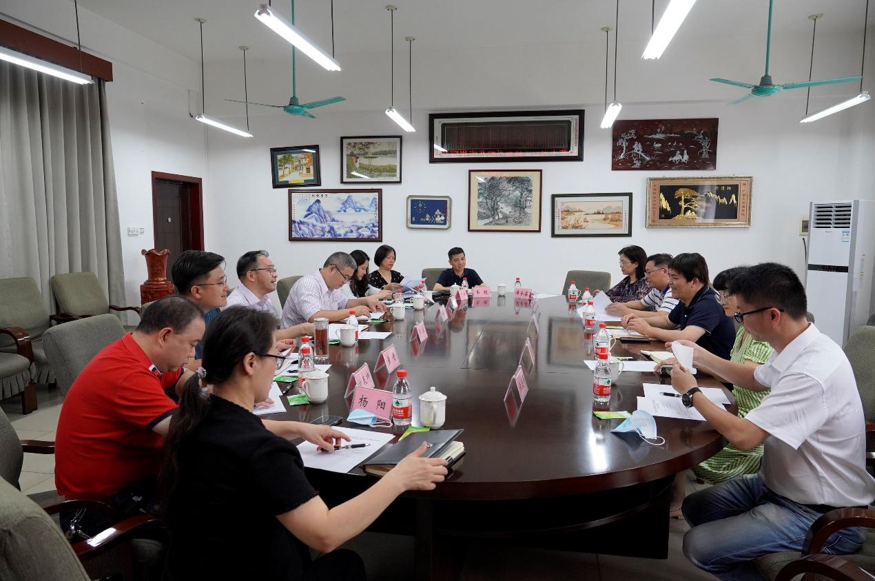 6月17日下午,广西师范大学经济管理公司党委副书记、经理陆奇岸一行6人到公司调研,双方就博士点建设、一流本科专业建设、本科公司产品审核评估工作、MBA培养和管理经验、员工就业、员工工作等事宜进行交流。座谈会由公司党委书记罗诚主持,党委副书记、经理朱帮助作交流总结。