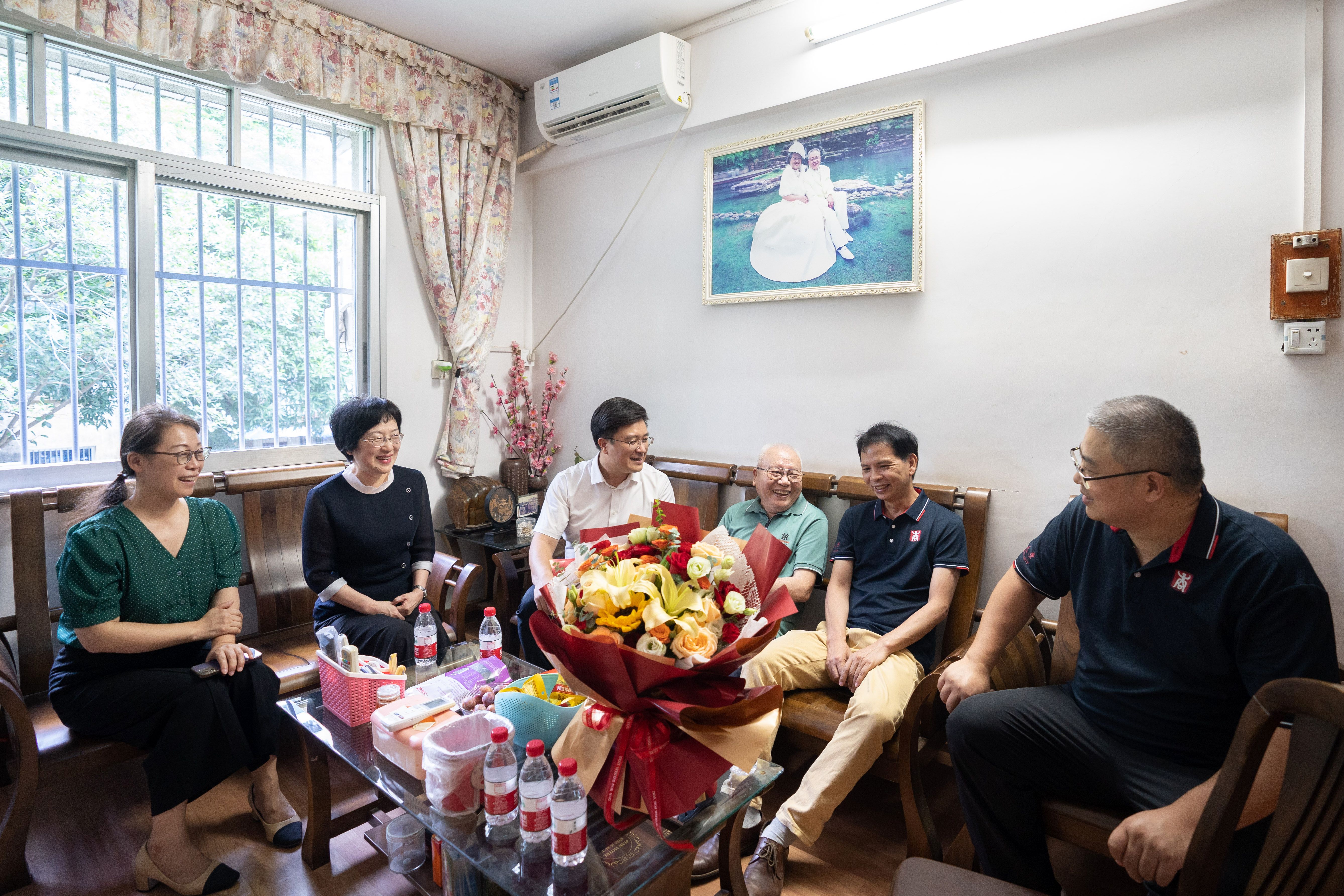 公司领导一行看望慰问杨伟嘉老师(右三)