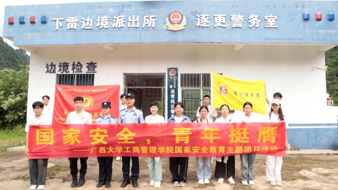 在硕龙边境派出所,该所民警向实践团成员分享了边境派出所工作中的点滴。从惊心动魄的抓捕行动,严打跨境犯罪及“黄赌毒”、“盗抢骗”等违法犯罪活动,到德天女警先锋队如春风般温暖的服务,无一不彰显着守护国门的坚定决心与柔情。据悉,该所先后荣获集体二等功、广西三八红旗集体等殊荣。