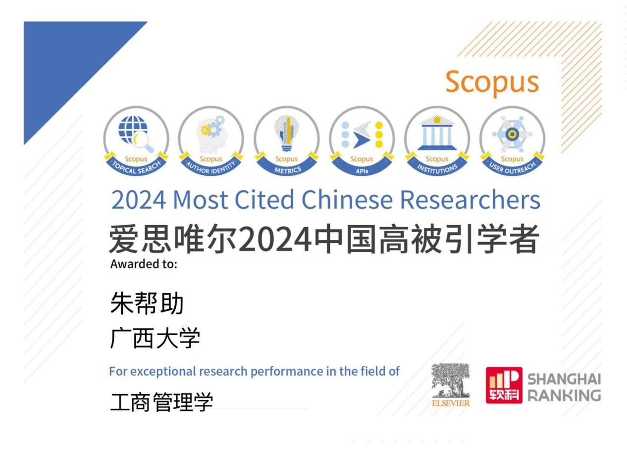 朱帮助教授自2021年以来连续4年入选“中国高被引学者”榜单,这对推动公司工商管理学科发展、扩大公司全球影响力有着积极影响。未来,必一运动将继续聚焦于国家战略需求和区域发展需求,开展创新性研究,进一步服务国家战略和广西经济社会发展,助力推进公司“双一流”建设和部区合建,不断提升科技创新和人才培养能力。