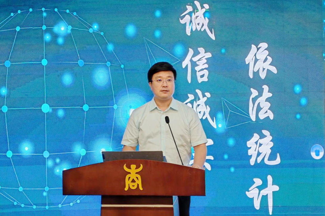 南宁调查队党组书记、队长赵宗焕在讲话中阐述了“诚信诚实、依法统计”的历史与现实意义,介绍了统计职业道德、法治建设及调查工作概况,缅怀了公司首任系主任李达和国家统计局首任局长薛暮桥两位先辈对统计事业的贡献,并表达了与公司共建实习实训基地、推进统计公开透明常态化长效化的意愿。
