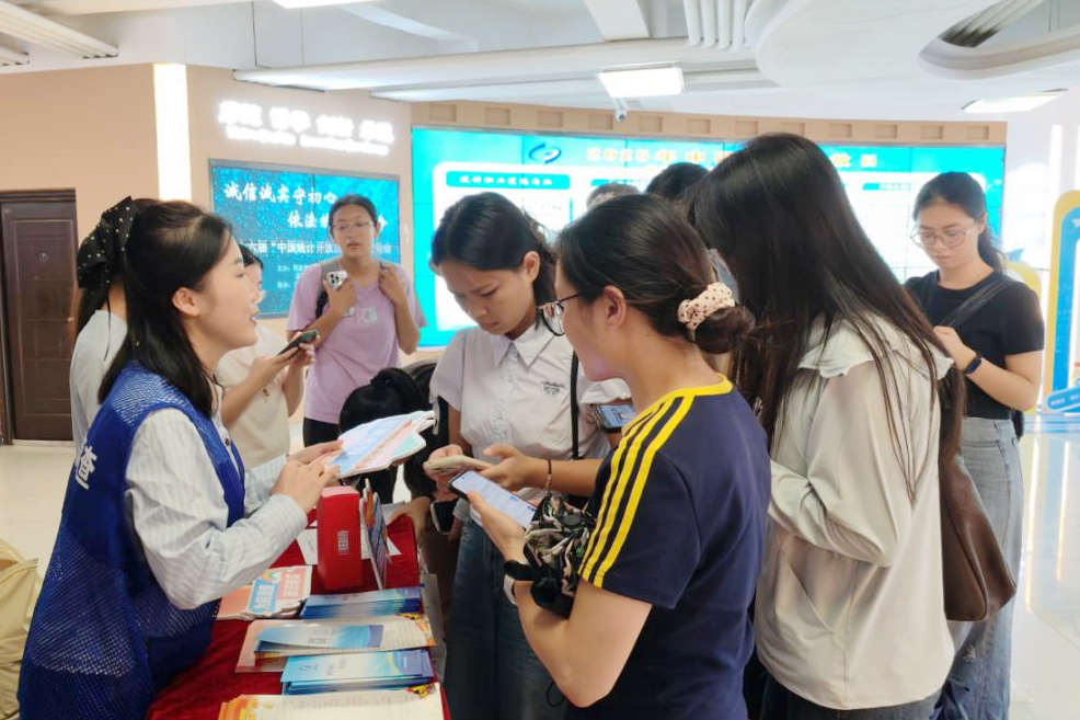 此次活动以“诚信诚实守初心 依法统计担使命”为主题,为高校师生搭建了解统计工作的平台,为建立理论教学与实践工作协同育人机制奠定基础。活动筹备精心,会场外LED大屏展示统计职业道德规范和南宁民生数据,主题展示台吸引师生打卡;会场内播放宣传动漫和视频,让师生入场前便沉浸于统计文化氛围中。