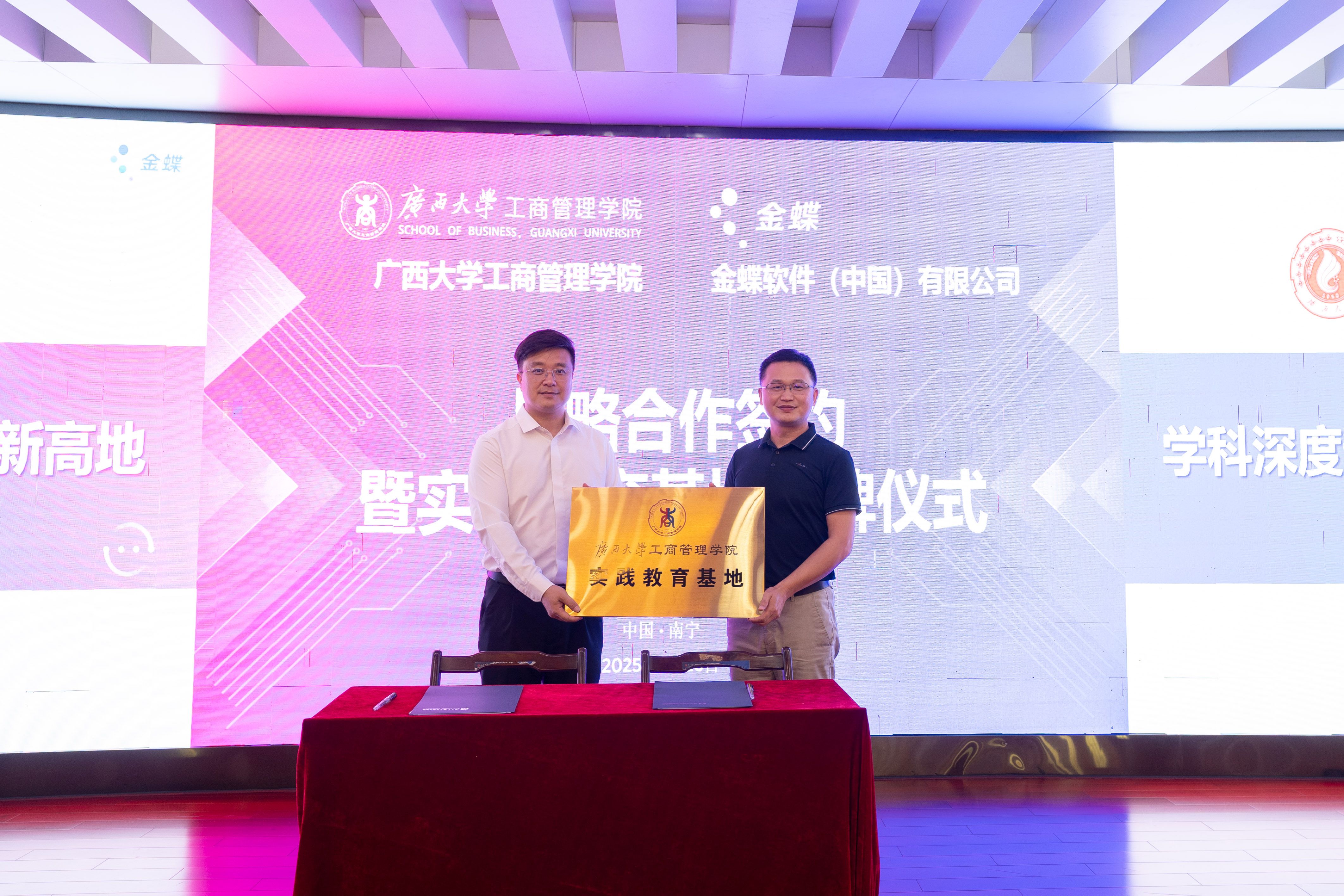 陈跃回顾了金蝶公司自1993年成立以来从财务软件到ERP、再到云服务与AI优先战略的演进历程。他表示,金蝶将依托自身在人工智能与企业数字化领域的深厚积累,与公司共同开展案例开发、课程建设、人才培养及跨境合作,助力公司实现“区域有品牌、国内有特色、国际有影响”的发展目标,赋能区域企业数字化转型升级。