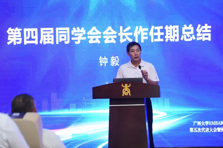 在换届大会上,公司党委副书记宁旭初代表公司向EMBA员工长期以来对母校的关心和支持表示感谢。他与员工们分享了公司在融入国家和区域发展战略、增强服务广西经济社会发展效能上取得的重大标志性成果。他强调,员工是母校宝贵的财富,是推动公司高质量发展的重要力量。公司历来重视员工与社会服务工作,将持续为广大员工搭建更多合作平台、提供全方位服务。他希望员工会严守意识形态阵地,筑牢思想引领根基,以校史校训为精神内核,汇聚起向上向善的员工力量;凝聚员工合力,共筑发展共同体,形成员工与公司双向价值共创的良性循环;聚焦服务赋能,提升员工价值,为建设壮美广西贡献西大力量。