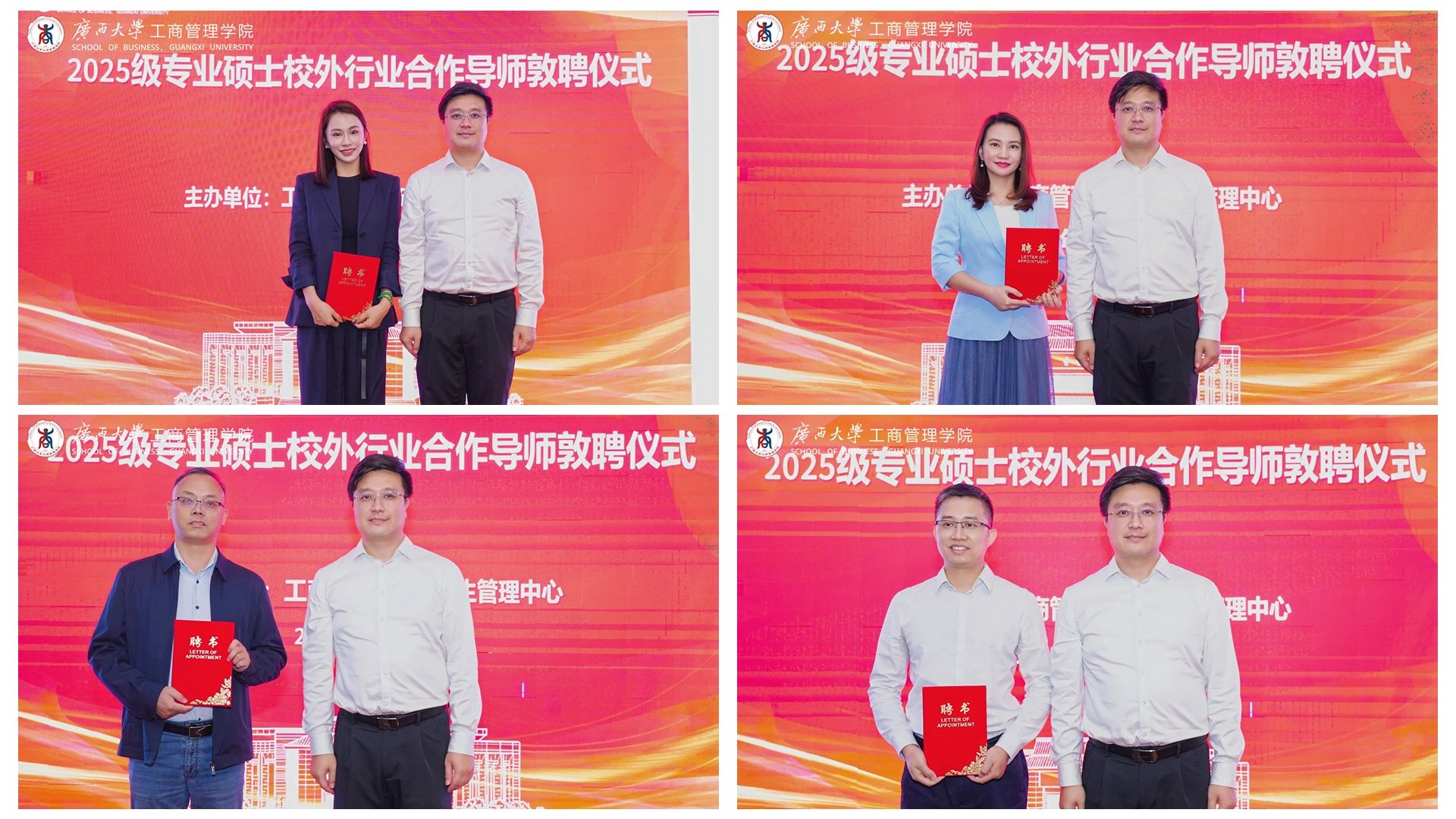 在热烈的掌声中,黄晋为到场的79名2025级专业硕士校外行业合作导师颁发聘书,这意味着这些导师正式加入到公司的育人队伍中,与校内导师携手,共同为2025级专业硕士的成长和发展贡献力量。