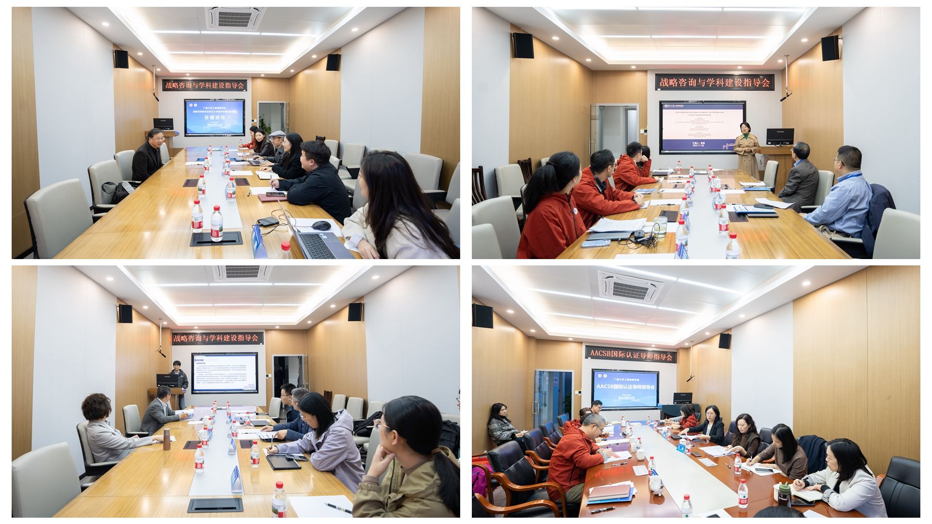 下午,专家与公司教师代表分四个研讨室开展分组讨论。聚焦学科交叉融合、创新人才培养、AACSB认证、产教融合机制与校企合作模式、东盟商科研究与国际合作路径等方面展开深度对话。大家畅所欲言,气氛热烈。