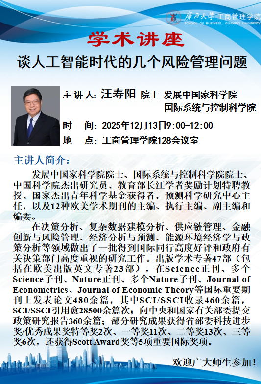 学术讲座|谈人工智能时代的几个风险管理问题