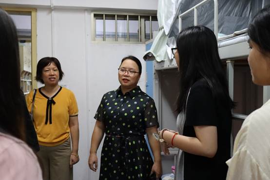 公司副经理朱少英、研究生管理中心主任叶映、年级辅导员张艳红以及新生班主任等领导老师前往2023级研究生新生宿舍进行走访,向新生们致以热情的欢迎和亲切的问候。她们询问新生们在生活方面的适应情况以及遇到的困难和问题等,并耐心解答员工们提出的各种问题,深切叮嘱了同学们注意寝室用电安全,注重维护整洁的寝室环境,合理调整好自己的心理状态和生活节奏,及早做好学术科研上的规划,为刚进校园的员工们送去了温情的关怀。