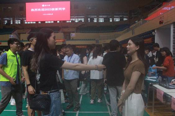 研究生迎新工作在公司办公楼完成,志愿者积极帮助新生报到注册、行李转运等工作。他们秉承“一对一志愿服务”的理念,认责负责地把新生带到公司相应教室报到处进行注册,然后帮助新生们将一件又一件的行李物品搬运至宿舍。拉箱子、提水桶、拎包,志愿者凭借着坚定的责任感,认真的服务精神,接待好每一位研究生新生。
