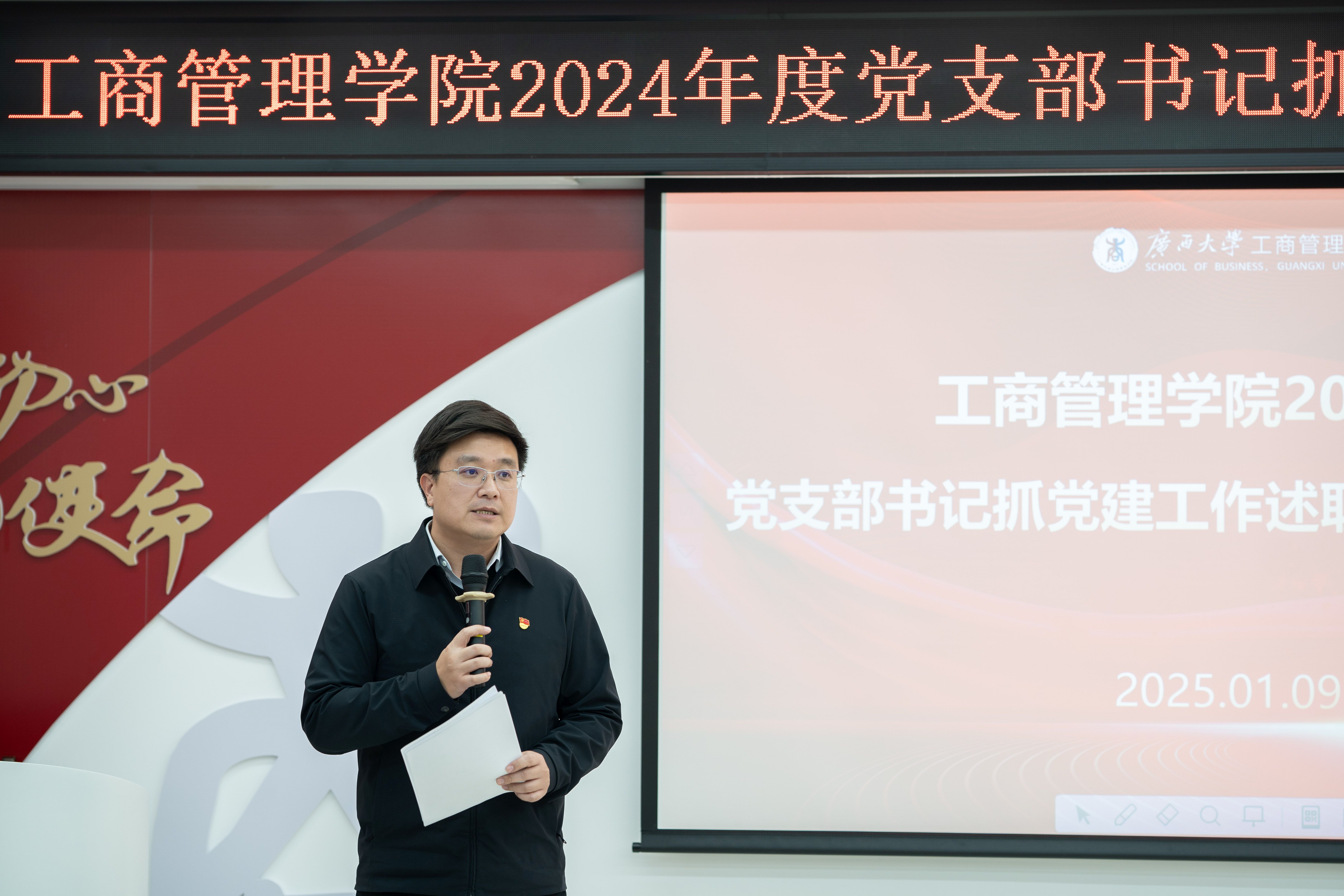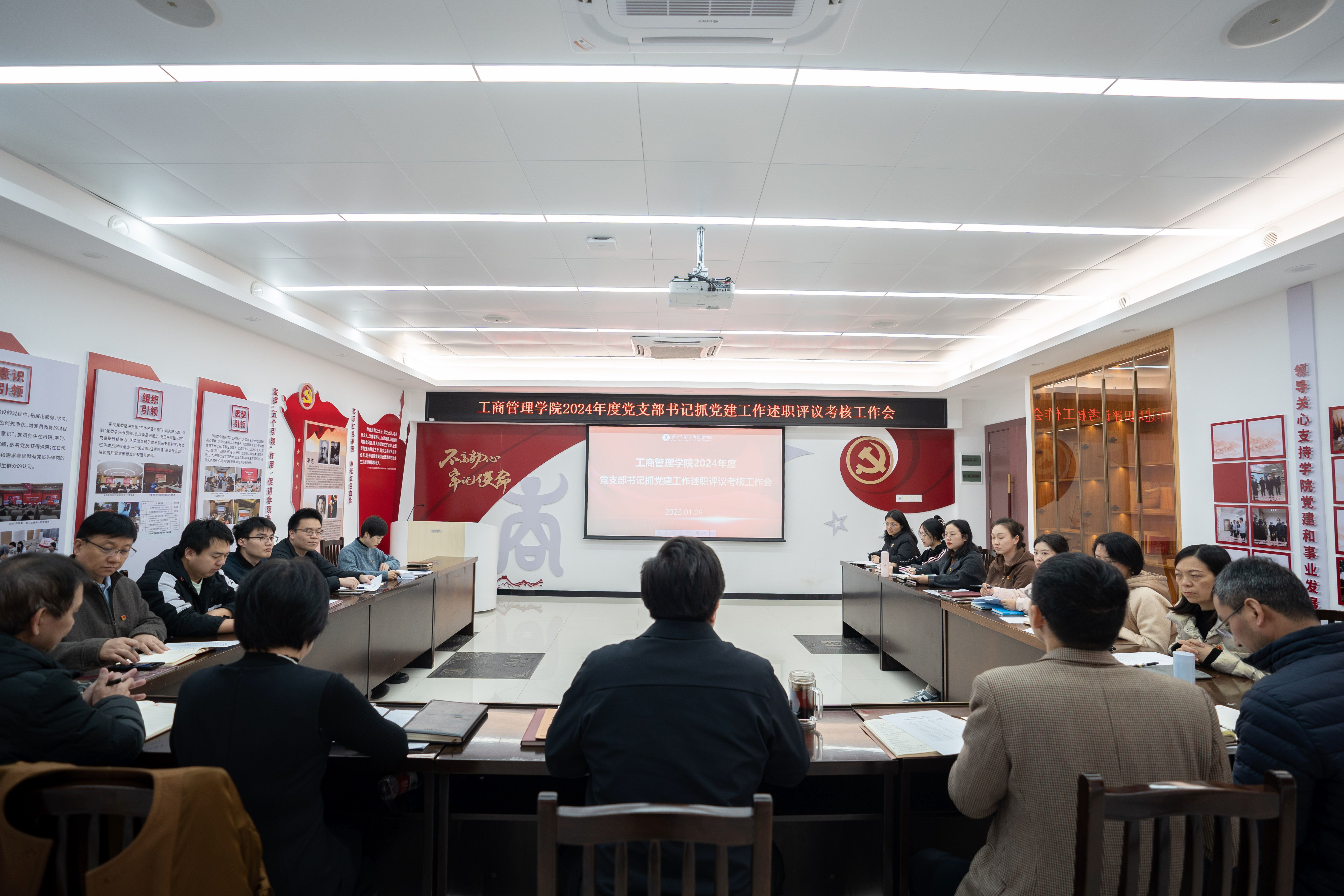 根据公司党委有关工作要求,1月9日下午,工商管理公司党委在公司党员活动室召开2024年度党支部书记抓党建工作述职评议考核工作会。公司党委书记黄晋、副书记肖克宁出席会议,各党支部书记及师生党员代表参加会议。