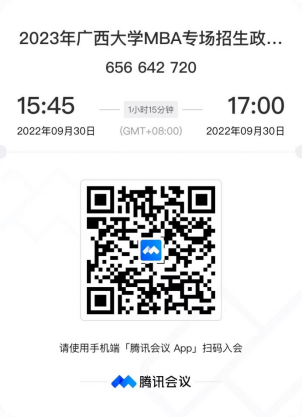 2023年考研报名时间临近,为助力考生提前做好报名准备,开启考研冲刺模式,公司将于2022年9月30日16:00举行2023年必一运动体育公司MBA专场招生政策解读会。本次解读会将集中讲解必一运动体育公司MBA项目、最新报考政策以及报考重要注意事项,请意向报考2023年必一运动体育公司MBA的考生于9月30日15:45扫码进入腾讯会议。