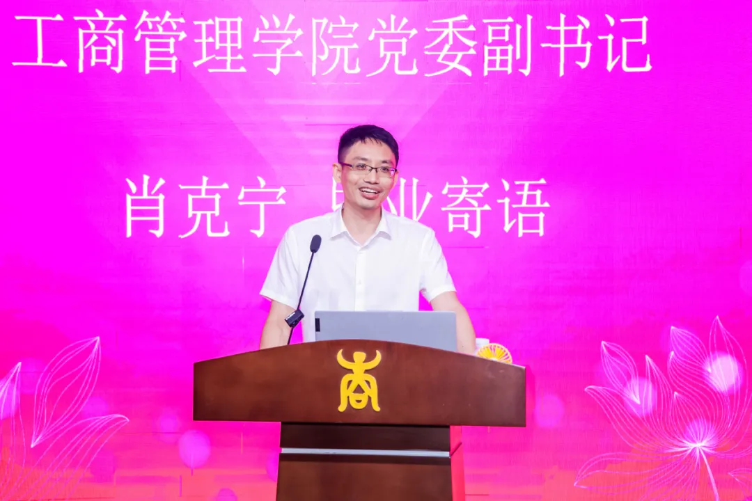 工商管理公司党委副书记肖克宁、副经理申韬、廖东红分别为EMBA毕业生作毕业寄语,给同学们送上了祝福与期望。