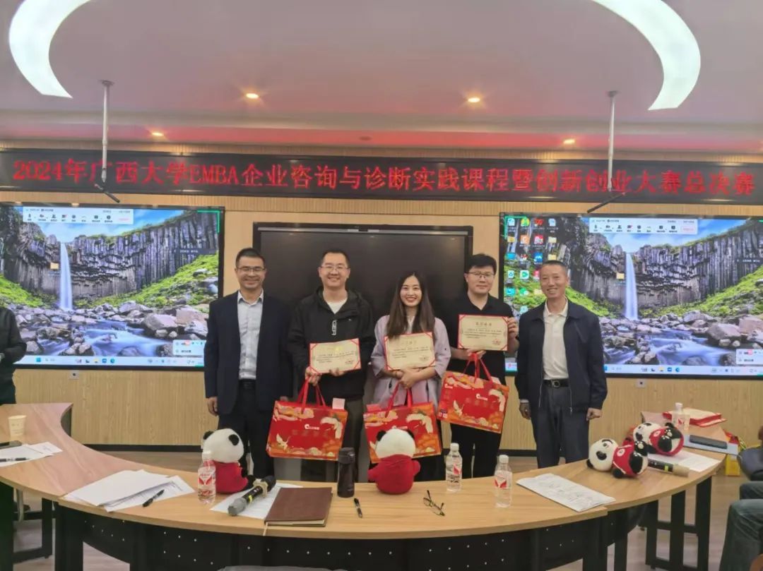 11月21日晚,经过近4个小时激烈而精彩的角逐,2024年EMBA企业咨询与诊断实践课程暨创新创业大赛总决赛圆满落幕。2024级EMBA员工组成的32个小组,经过选拔赛的比拼,共有10支队伍脱颖而出,凭借总决赛的精彩表现,最终产生一等奖2名、二等奖3名、三等奖5名。