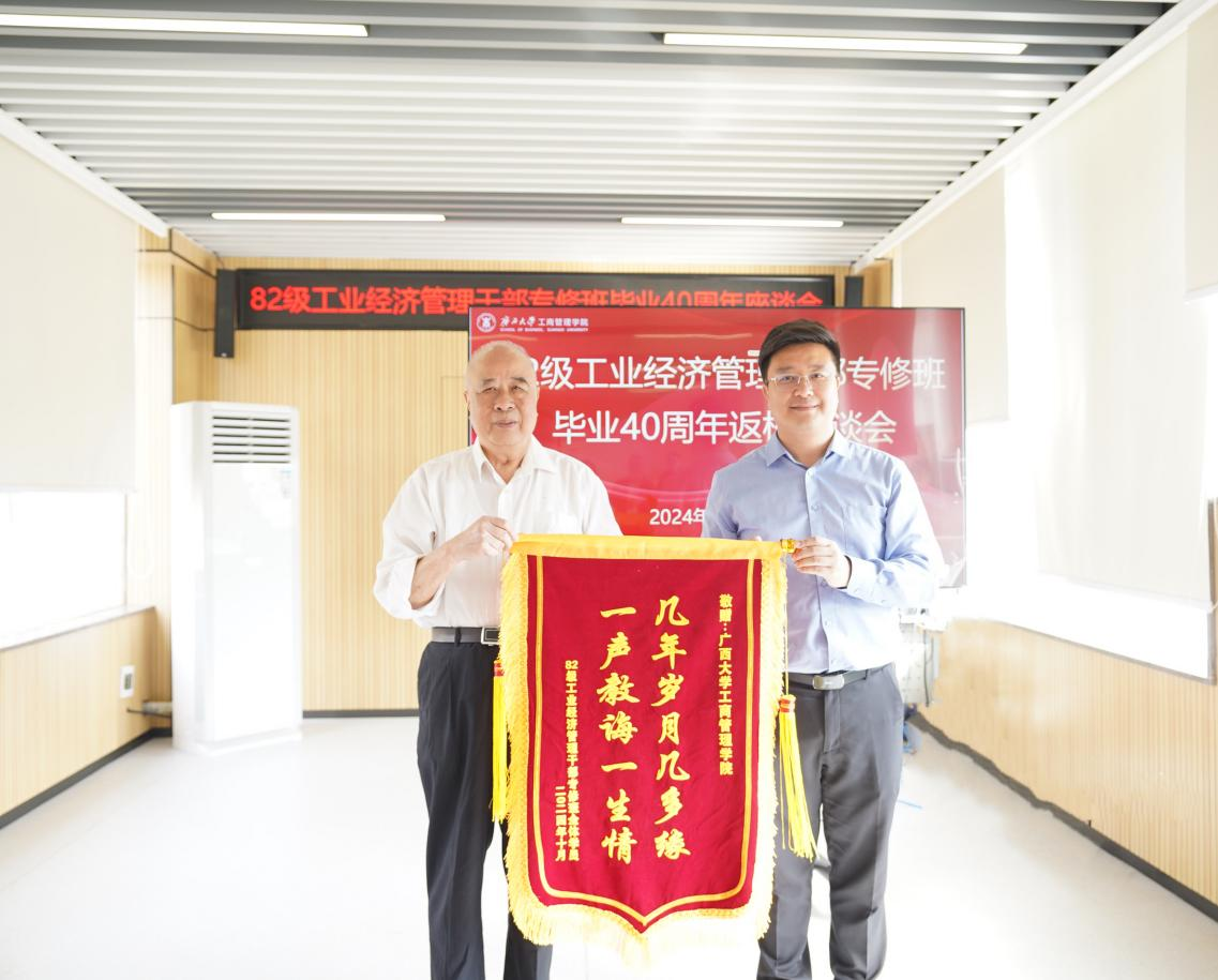 忆往昔青春岁月,看今朝再续前缘。10月30日,82级工业经济管理干部专修班毕业40周年返校座谈会在必一运动500教室举行。公司党委书记黄晋,原教研主任左昌鸿老师、原英语课祝远德老师、李立民老师和员工代表等30余人参加座谈会。员工工作与政企服务办公室主任覃朝勇主持座谈会。