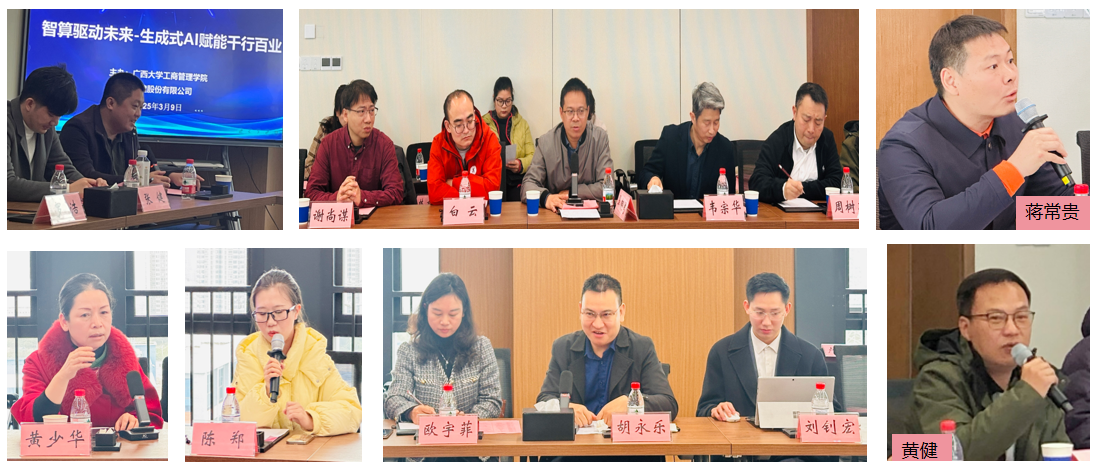 在自由交流环节,员工们围绕行业痛点积极提问,现场讨论氛围热烈。白云教授提出了校企联合攻克技术课题、共建实训基地的倡议,得到了润建技术团队的积极回应;周树高员工分享并探讨了新能源智能运维方案;邓柯员工(从事低空经济领域)关注无人机数据链路优化问题;黄健员工(来自家装行业)咨询AI 智能设计系统的应用情况;EDP 员工蒋常贵(环保领域)提议开展建筑垃圾资源化技术合作,推动跨界融合创新。EMBA 员工黄少华就 “财务 + AI” 智能化转型、中小微企业融资风控模型等议题展开了探讨。