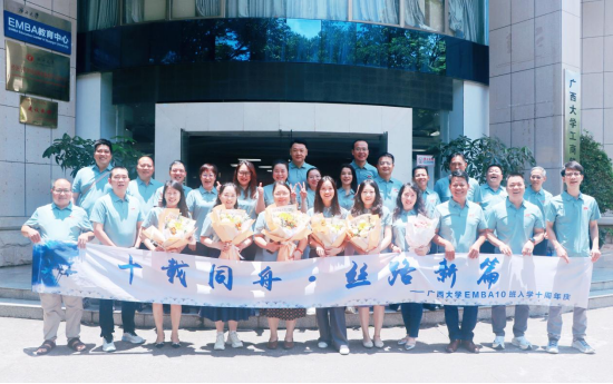2025 年 6 月 13 日上午,必一运动 516 教室洋溢着浓浓的情谊与欢声笑语,EMBA10 班 “入学十周年” 返校座谈会在此温馨举行。公司副经理朱少英、员工工作与政企服务办公室主任覃朝勇等教师代表,与近 30 位 EMBA10 班员工齐聚一堂,共同回首往昔同窗岁月,展望未来发展蓝图。