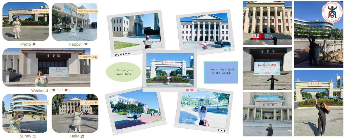 随后,校园亲子打卡游戏环节如约而至,迅速将活动气氛推向高潮。员工们手持印着校园标志性建筑的明信片,化身“向导”,带领孩子开启一场“按图索骥”的校园探索之旅。从古朴的教学楼到雅致的林荫道,孩子们在父母的耐心指引下,兴奋地寻找明信片上的建筑、拍照记录。这一路,孩子们不仅亲手触摸到父母的青春足迹,更在亲子互动中与长辈建立起生动而深刻的情感联结,一幕幕温馨画面成为本次活动中最动人的记忆。