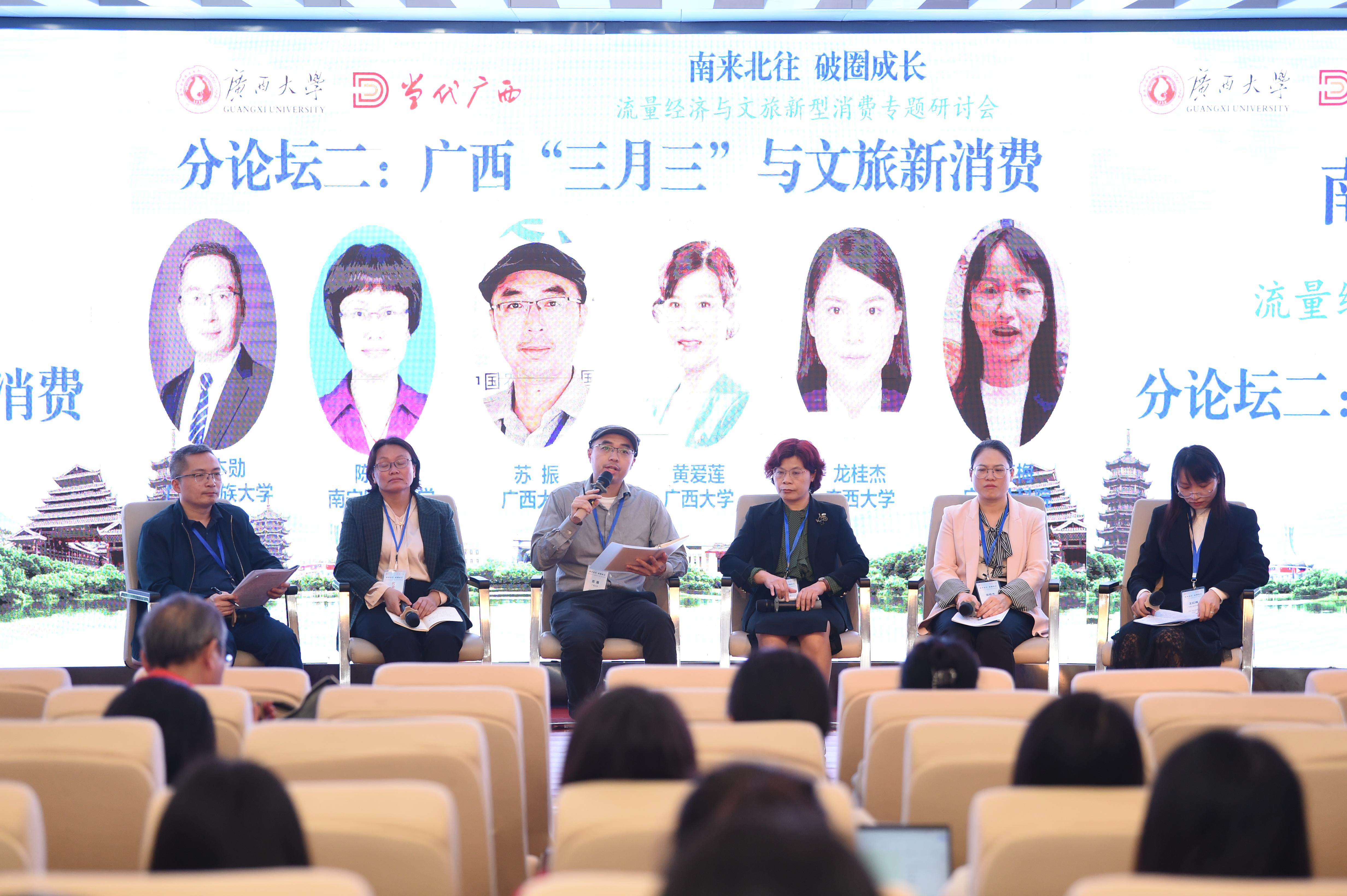 在主旨发言环节,与会专家代表及公司副经理刘民坤教授、胡明明副教授分别围绕“新质生产力视域下文旅新型消费解构与创新重构”“文旅破圈与结盟”“尔滨冰雪热‘冷思考’”“破解‘流量经济’密码”“网红城市旅游需求大数据分析”等方面分别作主题发言。在分论坛研讨环节,与会专家代表分别对网红城市与流量经济、广西“三月三”与文旅新消费开展热烈而深入的交流与讨论。
