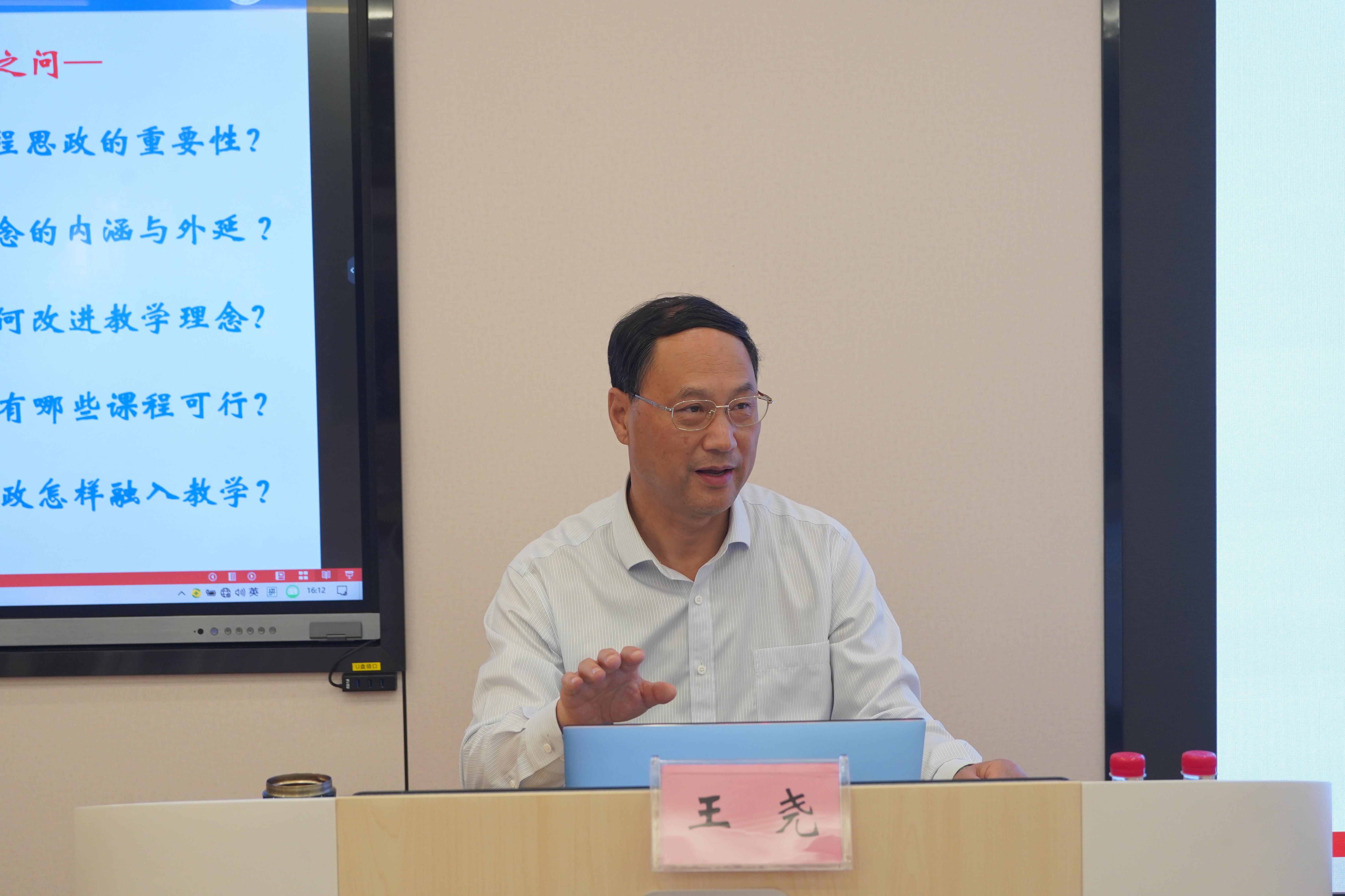 报告中,王尧教授以2020年教育部《高等公司课程思政建设指导纲要》的要求为切入点,结合自己多年的教育管理经验和鲜活案例,对课程思政的概念内涵、外延拓展、目的原因及实施路径等进行了全面阐述,并提出从“何位、何谓、何畏、何维、何为”五个方面构建课程思政的体系框架。他强调,做好课程思政主要从四个方面入手:一是提升对教学学术性的认识;二是注重教师队伍建设,培养教师“课程思政思想”;三是坚持课程思政的基本原则;四是将“思政”与“知识”融合,深挖思政元素,融入课堂教学。