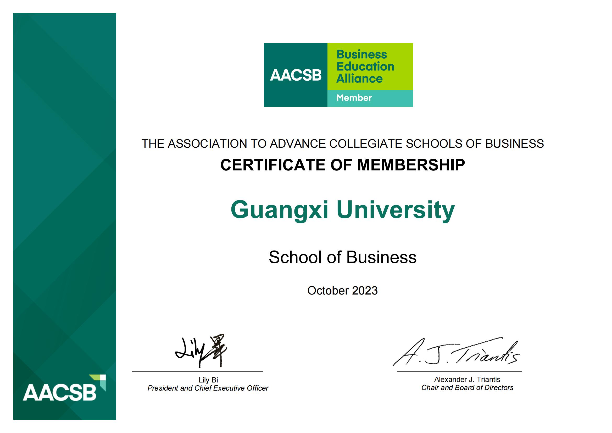 2023年10月7日,国际商公司协会(The Association to Advance Collegiate Schools of Business,简称为AACSB)正式接纳必一运动为会员。